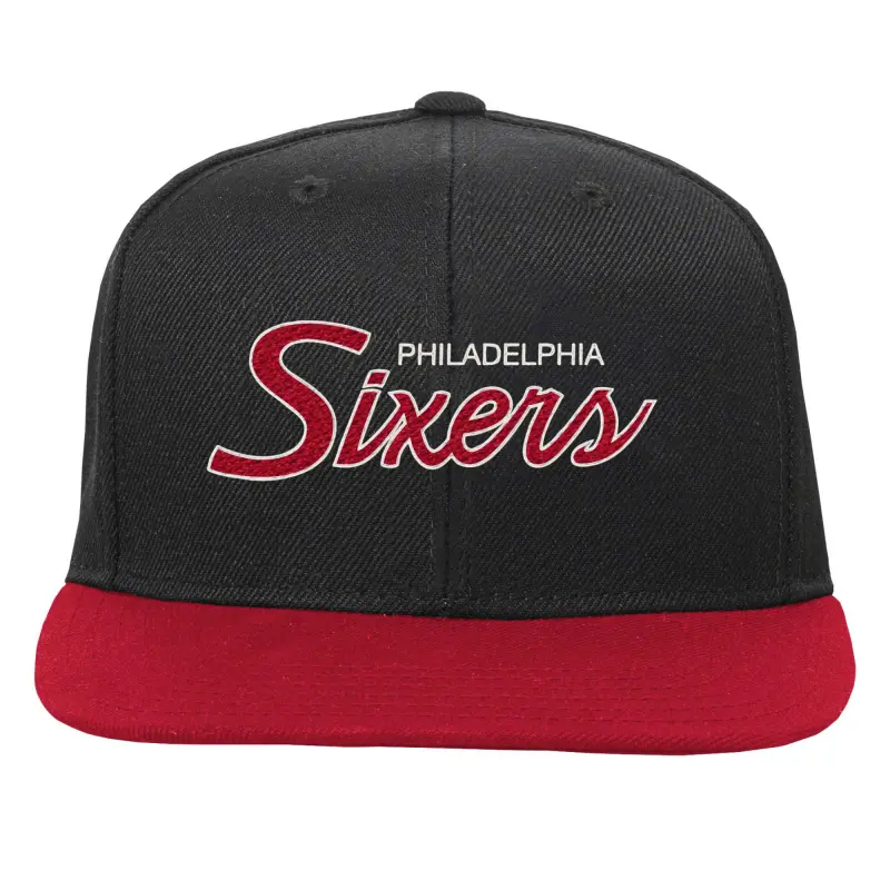 Youth Philadelphia 76ers Mitchell & Ness Black Team Script Snapback Hat