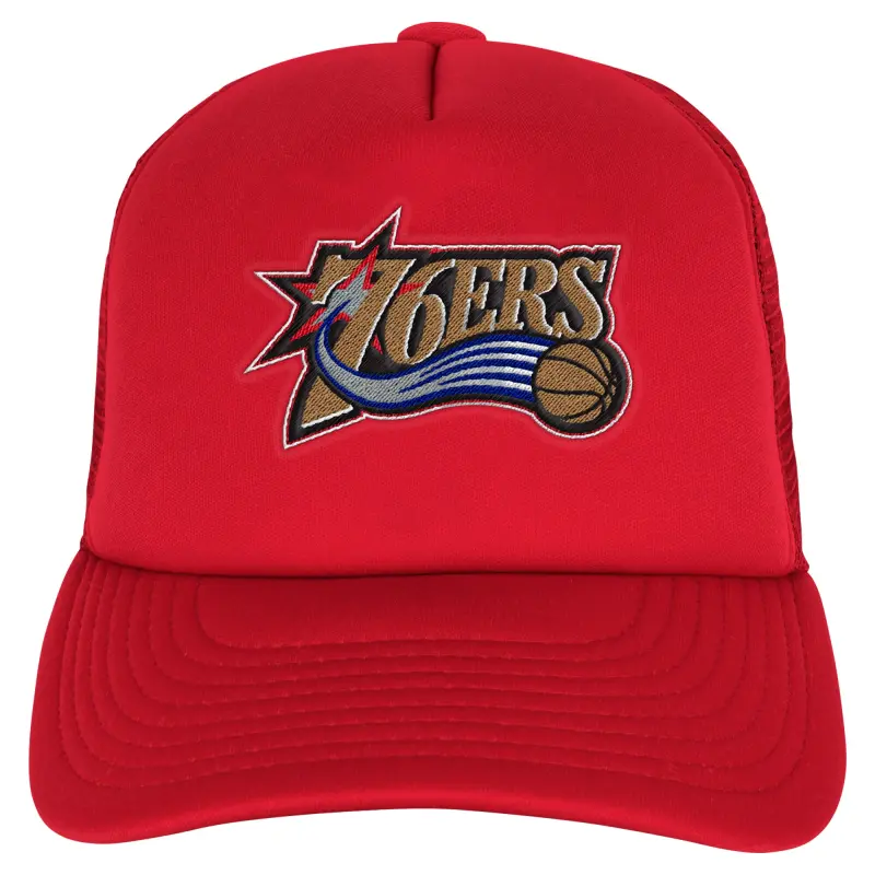 Youth Philadelphia 76ers Mitchell & Ness Red Core Evergreen Trucker Adjustable Hat