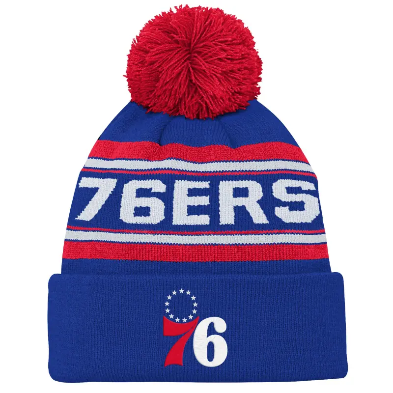 Youth Philadelphia 76ers Royal Backboard Jacquard Cuffed Knit Hat with Pom