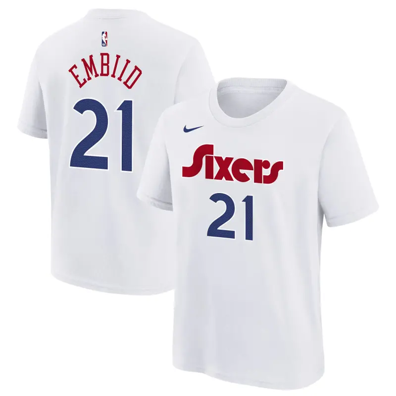 Youth Philadelphia 76ers Joel Embiid Nike White 2024/25 City Edition Name & Number T-Shirt