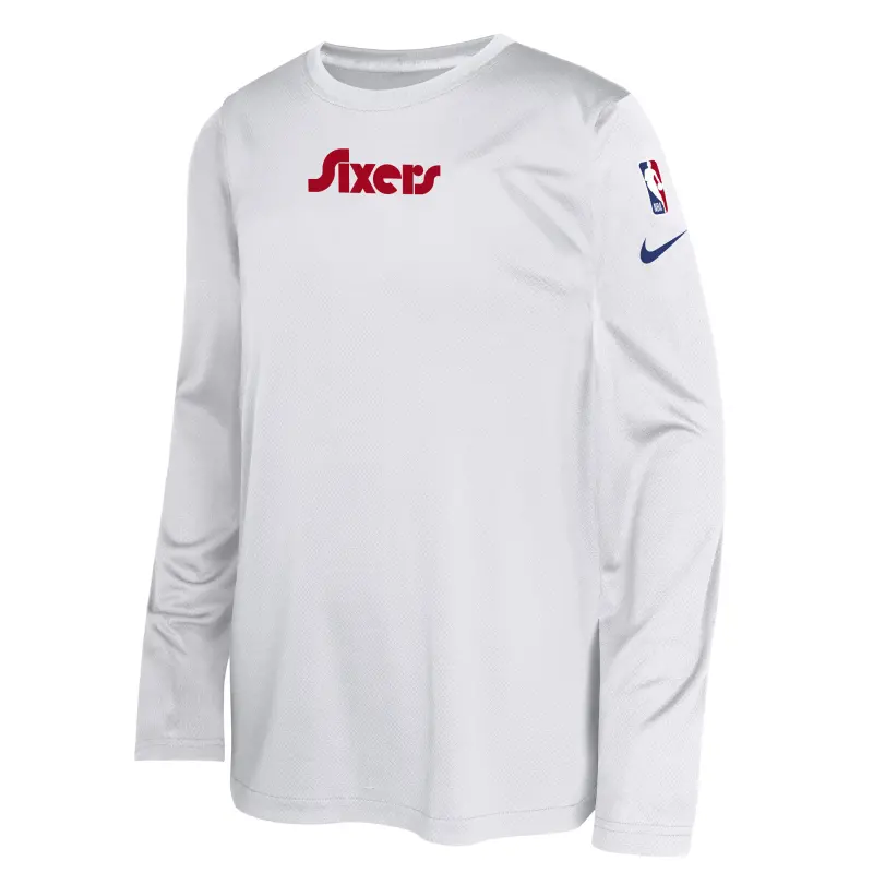 Youth Philadelphia 76ers Nike White 2024/25 City Edition Pregame Performance Long Sleeve Shooting T-Shirt