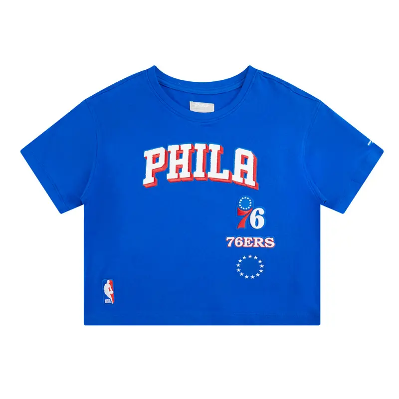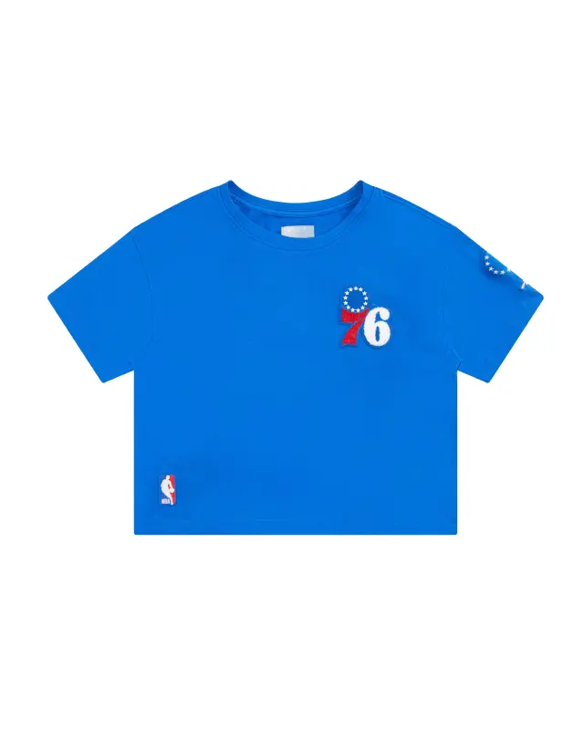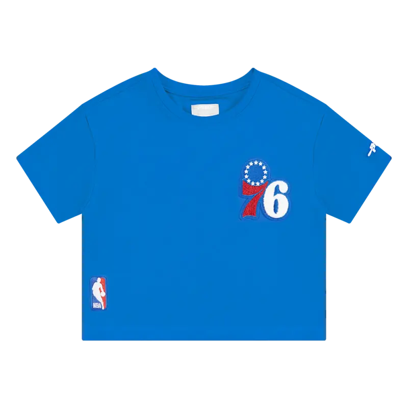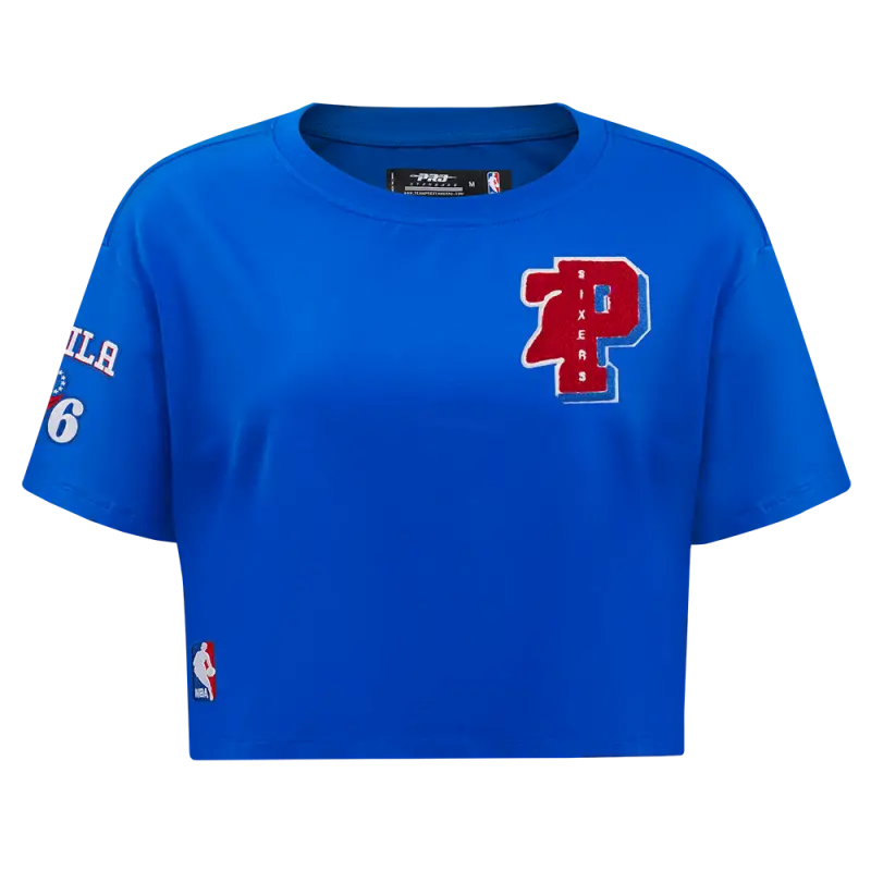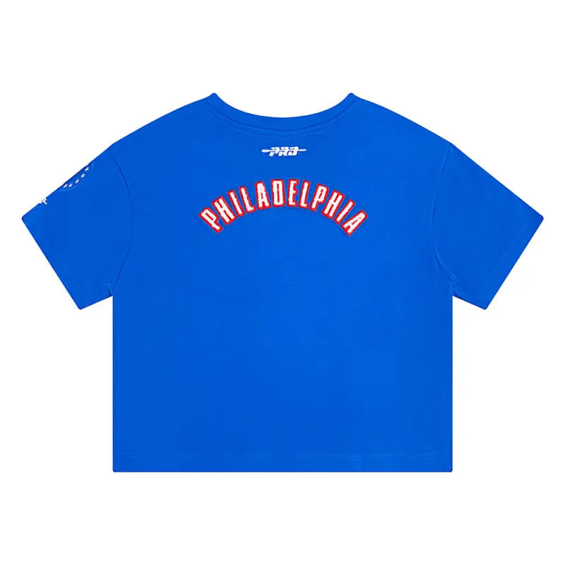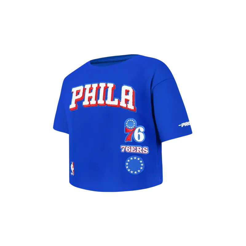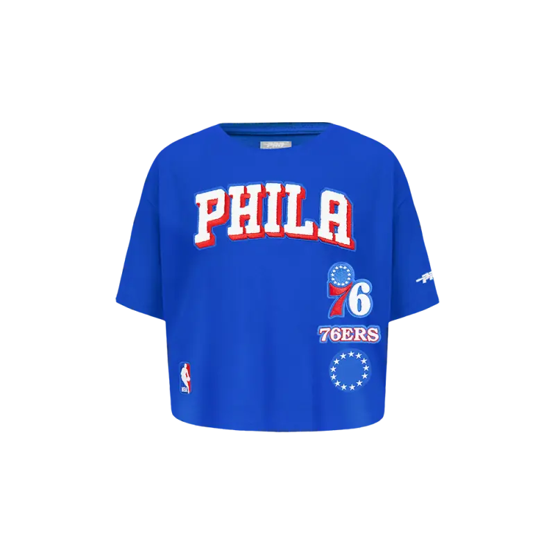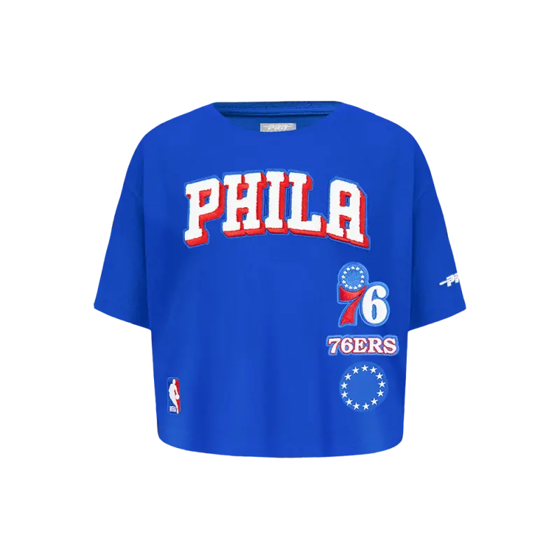NBA PHILADELPHIA 76ERS MASHUP WOMEN’S BOXY TEE (ROYAL BLUE)