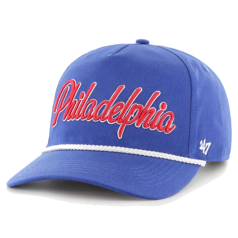 Men’s Philadelphia 76ers ’47 Royal Double Header Sidepatch Cord Hitch Adjustable Hat