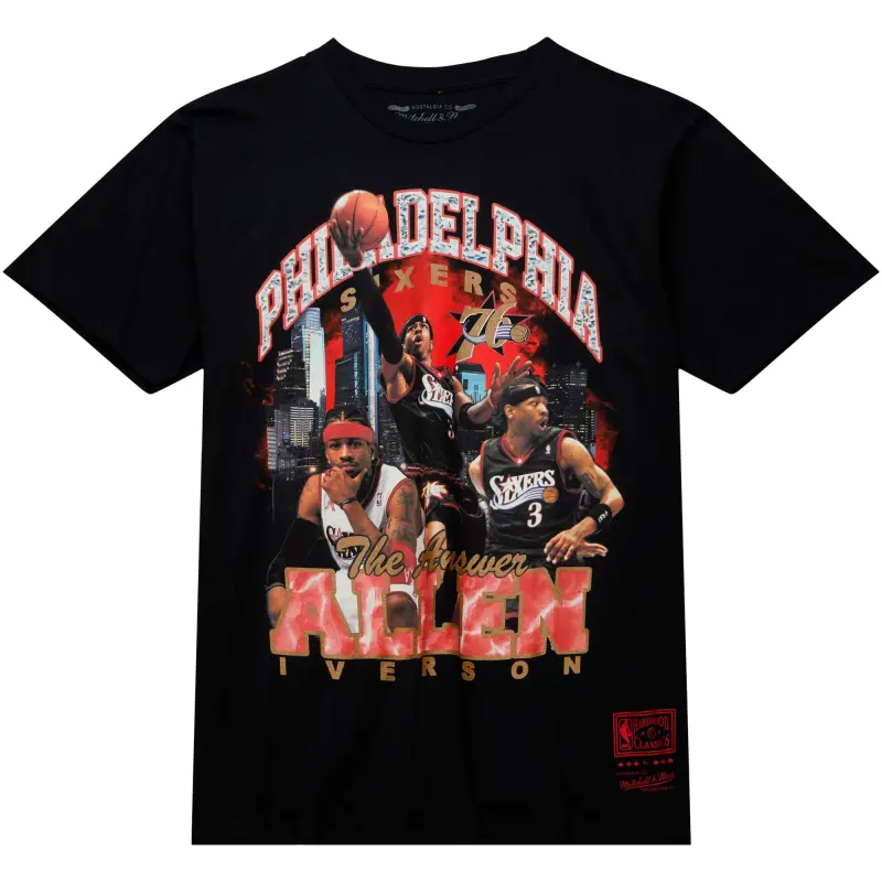 Men’s Philadelphia 76ers Allen Iverson Mitchell & Ness Black Hardwood Classics Bling Concert Player T-Shirt