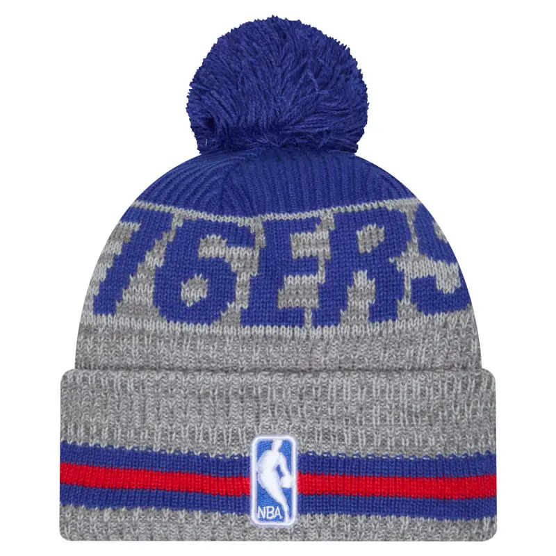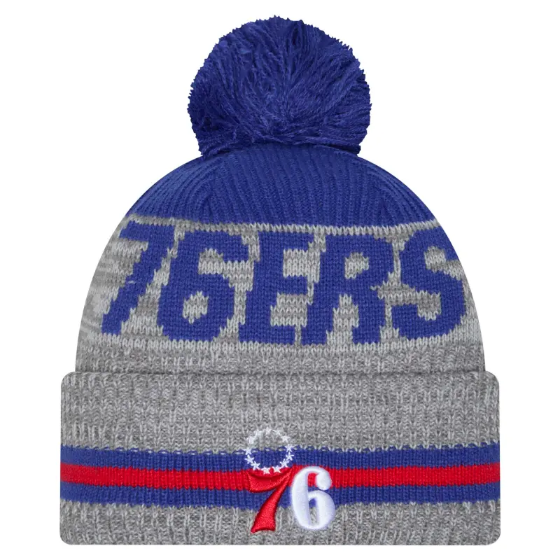 - Step out with a spirited nod to your favorite NBA squad by snagging this Philadelphia 76ers Sport Night Runner Cuffed Knit Hat with Pom from New Era. It features a signature Philadelphia 76ers graphic embroidered on the cuff and a woven team wordmark that pairs well with your favorite tee or accessory. The pom on top adds a fun, jovial finish, and the acrylic knit design makes this hat a strong choice when you want to warm your noggin in style.