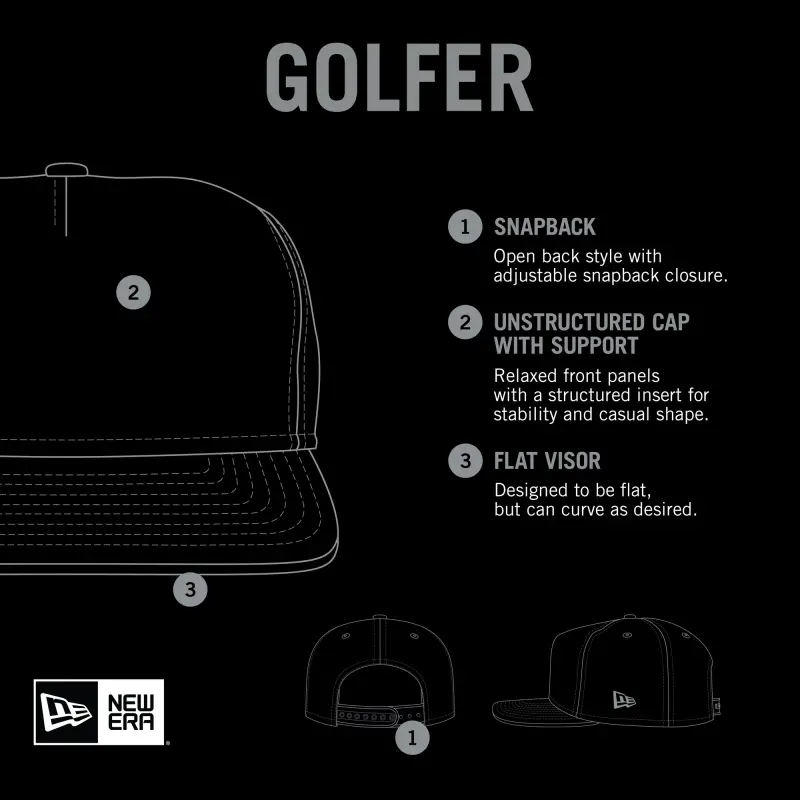 - The Golfer is a semi-structured cap, with a pinched crown and flat visor which gives a retro look and shape like snapbacks from the ’80s and ’90s
