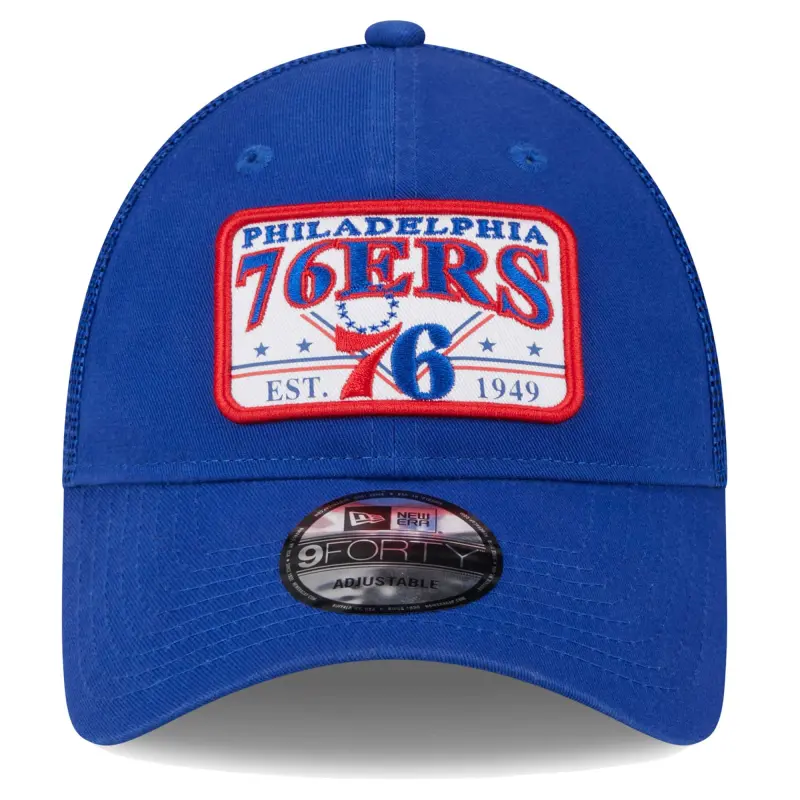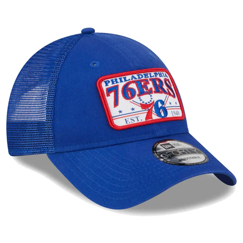 - Keep your Philadelphia 76ers fandom rolling along for the long haul with this Plate Oversized Patch Trucker 9FORTY hat from New Era. It features the team name, logo and founding year displayed across the front. Mesh panels provide a breezy feel, and a snap closure makes adjusting the fit of this Philadelphia 76ers cap quick and simple.