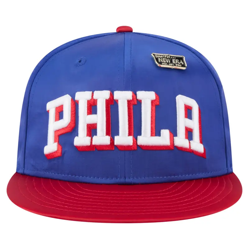 - Celebrate the history of the Philadelphia 76ers with this Throwback Satin Vintage Pin Two-Tone 59FIFTY Fitted Hat from New Era. This Philadelphia 76ers hat features a high crown and structured fit for a classic look. Made from satin polyester, this hat has a vintage feel and features an embroidered team wordmark on the front panels.