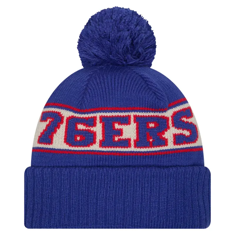 - Step out with a spirited nod to your favorite NBA squad by snagging this Philadelphia 76ers Throwback Retro Cuffed Knit Hat with Pom from New Era. It features a signature Philadelphia 76ers graphic embroidered on the cuff and a woven team wordmark that pairs well with your favorite tee or accessory. The pom on top adds a fun, jovial finish, and the acrylic knit design makes this knit hat a strong choice when you want to warm your noggin in style.