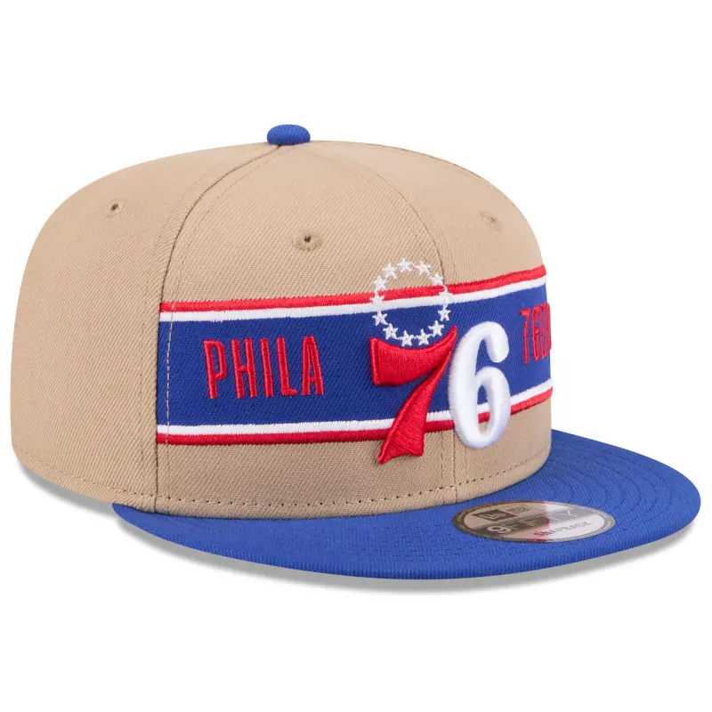 Home / Shop / Philadelphia 76ers / Men’s Philadelphia 76ers New Era Tan/Royal 2024 NBA Draft 9FIFTY Snapback Hat