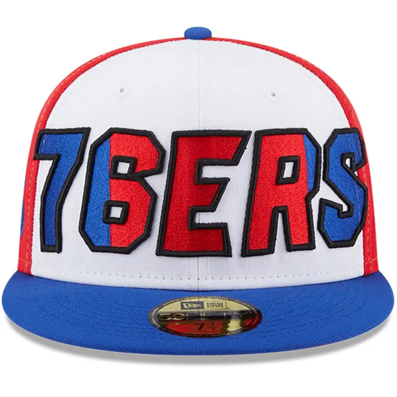 - Turn attention toward your Philadelphia 76ers fandom when you sport this Back Half 9FIFTY hat from New Era. Its colorful design features the Philadelphia 76ers logo embroidered on the side and the team name in a big, bold two-tone pattern across the front that catches the eye. A fitted construction also ensures this striking cap fits you perfectly.