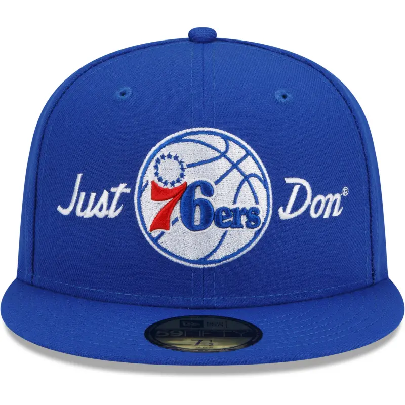 - Turn heads at the next Philadelphia 76ers game in this 59FIFTY fitted hat from the New Era x Just Don collection. It features the team’s signature logo and an official Just Don wordmark across the front panels for a trendy look. With a structured, high-crown fit, this cap puts a modern twist on a classic design.