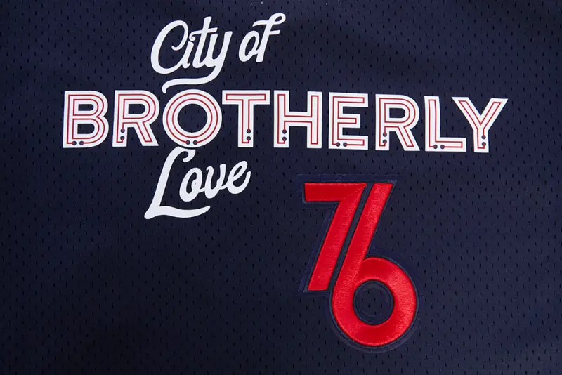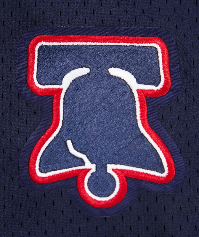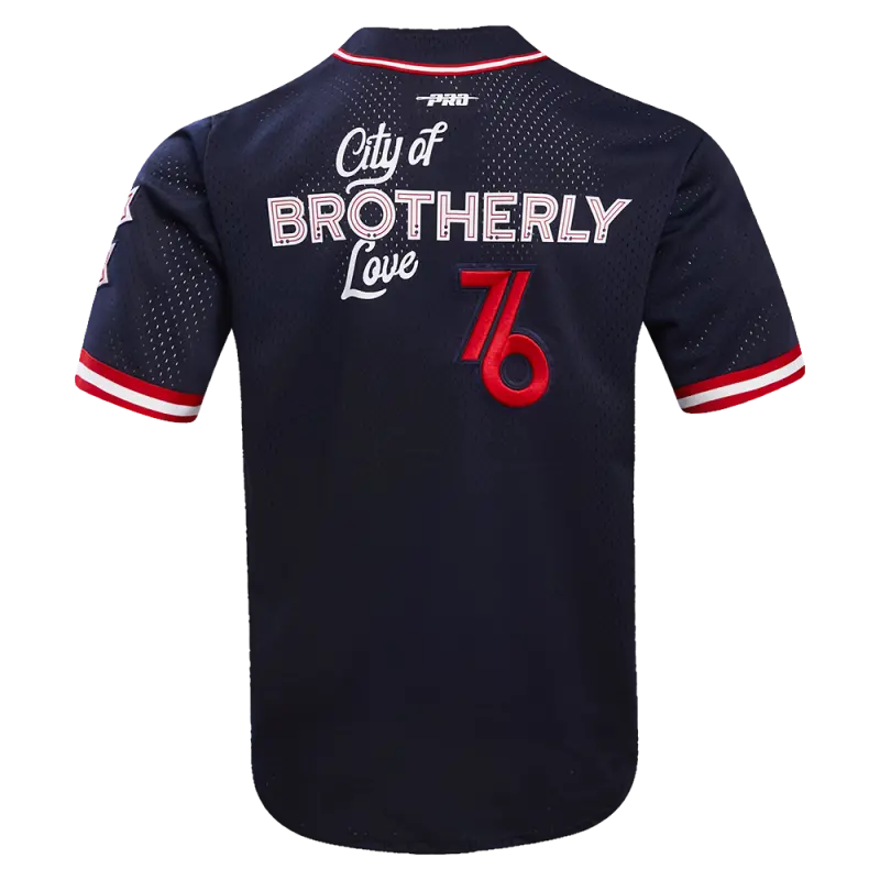 The Pro Standard Premium NBA Philadelphia 76Ers Chest City Of Brotherly Love Men’s Mesh Button Dow (Midnight Navy/Red)