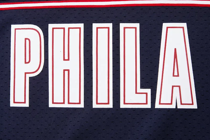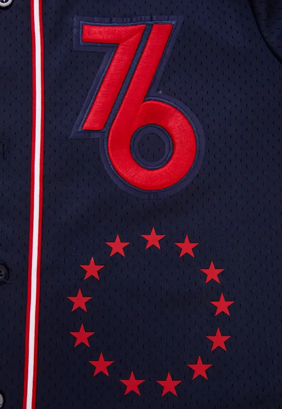 NBA PHILADELPHIA 76ERS CHEST CITY OF BROTHERLY LOVE MEN’S MESH BUTTON DOW (MIDNIGHT NAVY\/RED)