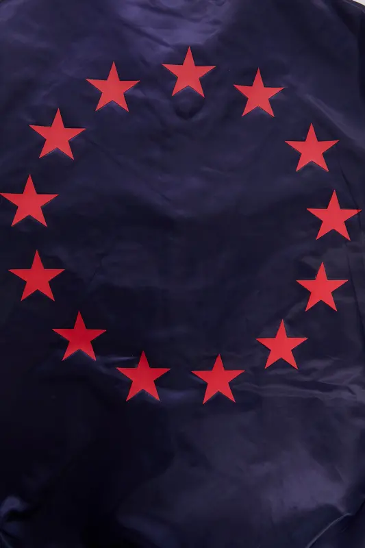 The Pro Standard Premium NBA Philadelphia 76Ers Chest City Of Brotherly Love Men’s Rib Satin Jacke (Midnight Navy/Red/Midnight Navy)