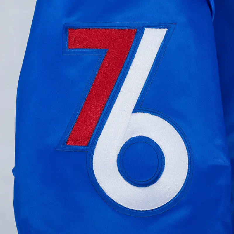 NBA PHILADELPHIA 76ERS CITY EDITION 24-25 MEN’S RIB SATIN JACKET (ROYAL BLUE)