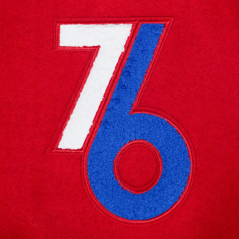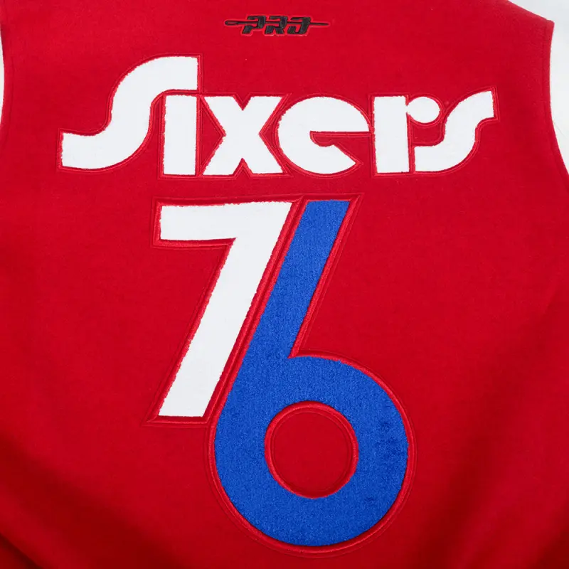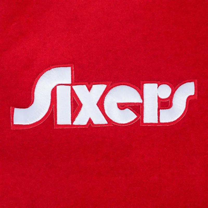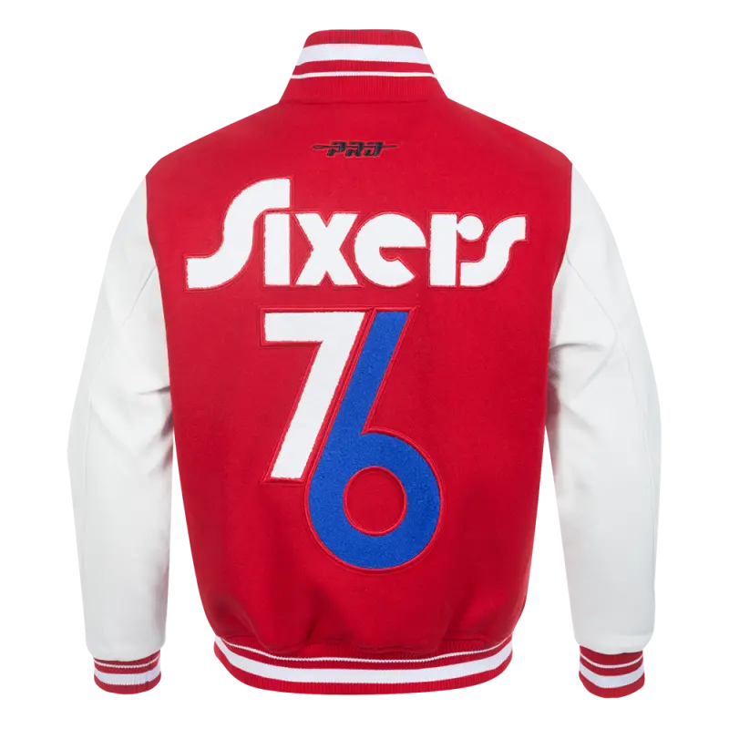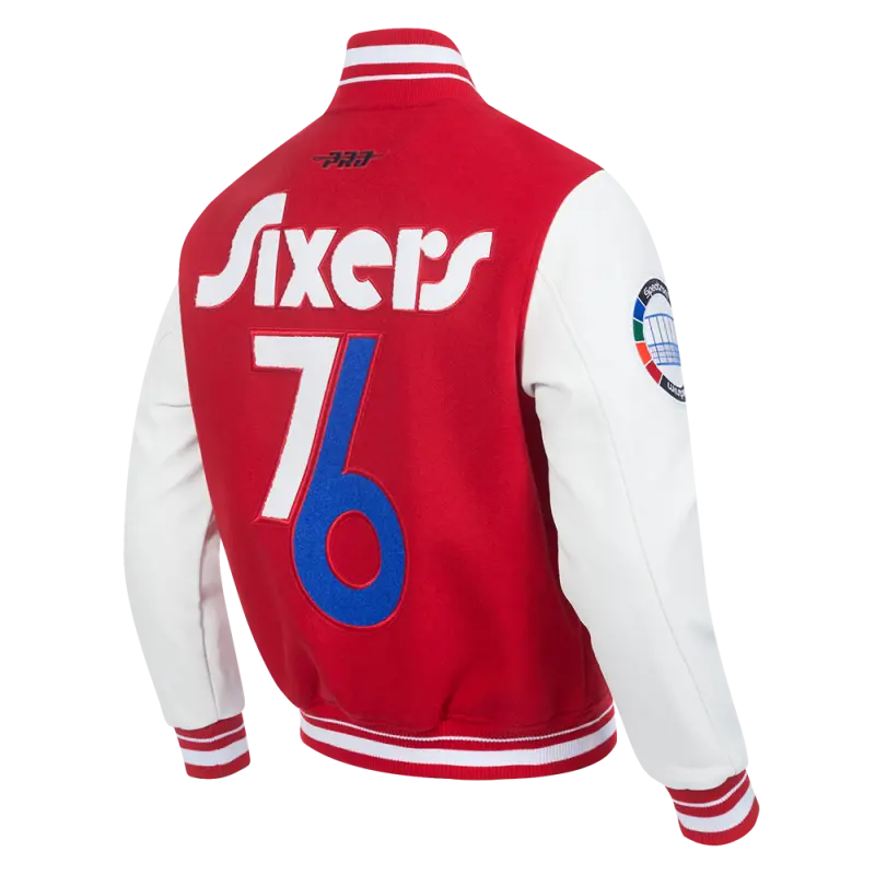 NBA PHILADELPHIA 76ERS CITY EDITION 24-25 MEN’S RIB WOOL VARSITY JACK (RED\/WHITE)