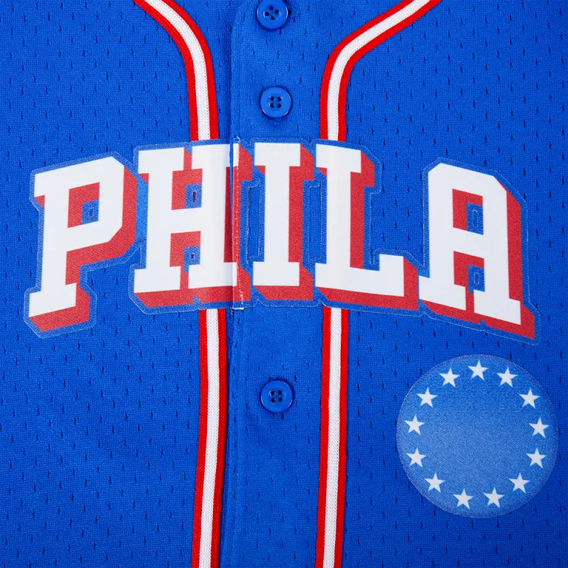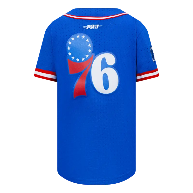 NBA PHILADELPHIA 76ERS CLASSIC LITTLE BOYS MESH BUTTON DOWN SHIRT (ROYAL BLUE\/RED)