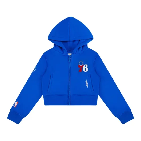 NBA PHILADELPHIA 76ERS CLASSIC LITTLE GIRLS FLEECE FULL ZIP HOODIE (ROYAL BLUE)