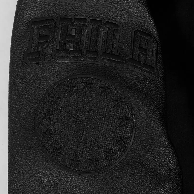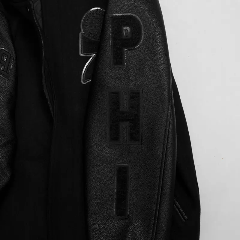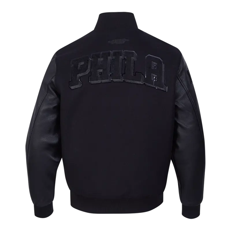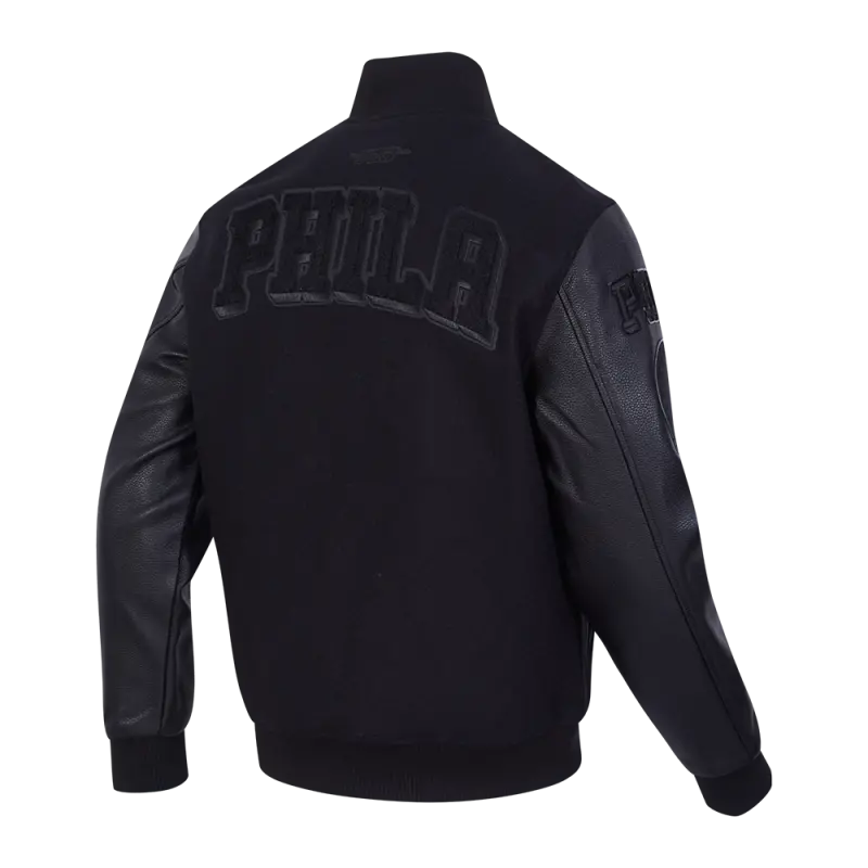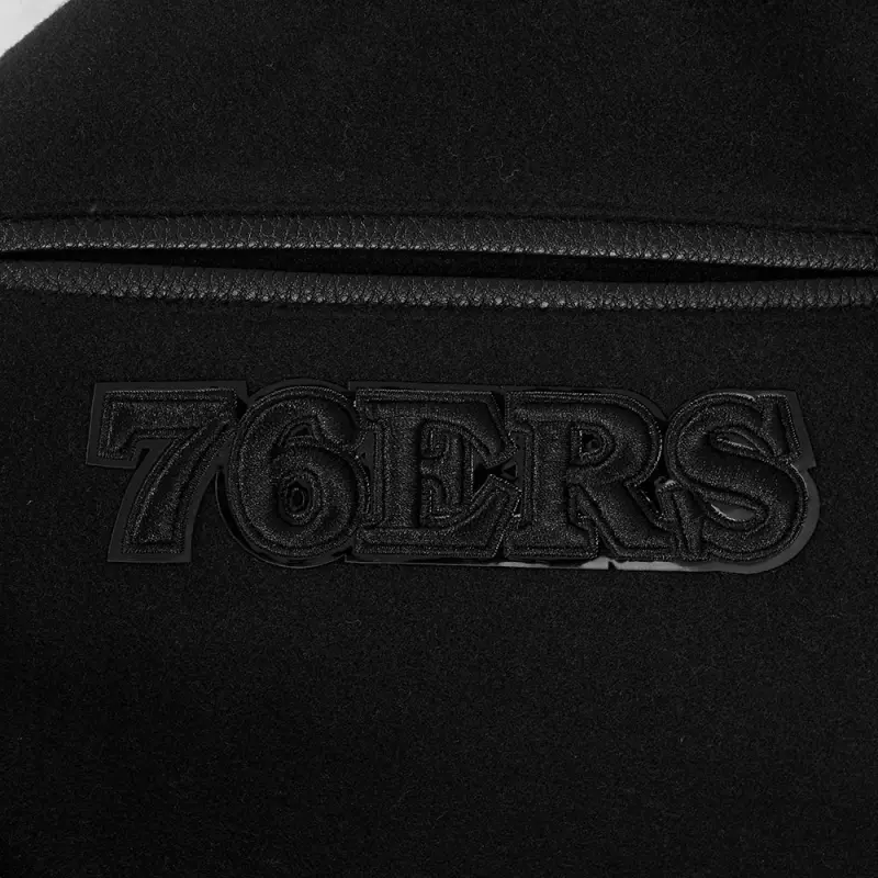 NBA PHILADELPHIA 76ERS CLASSIC MEN’S 3BK WOOL VARSITY JACKET (TRIPLE BLACK)