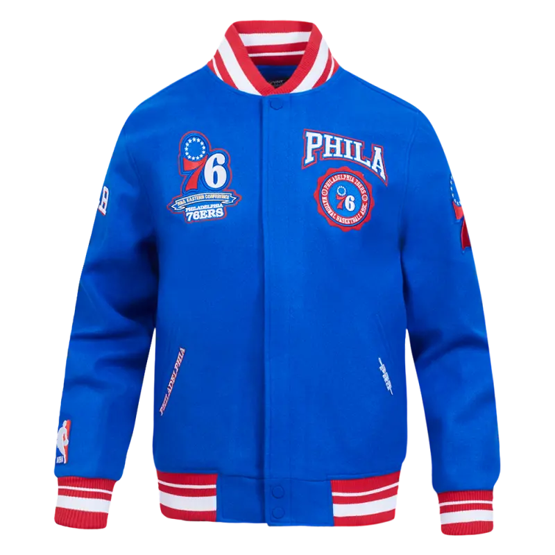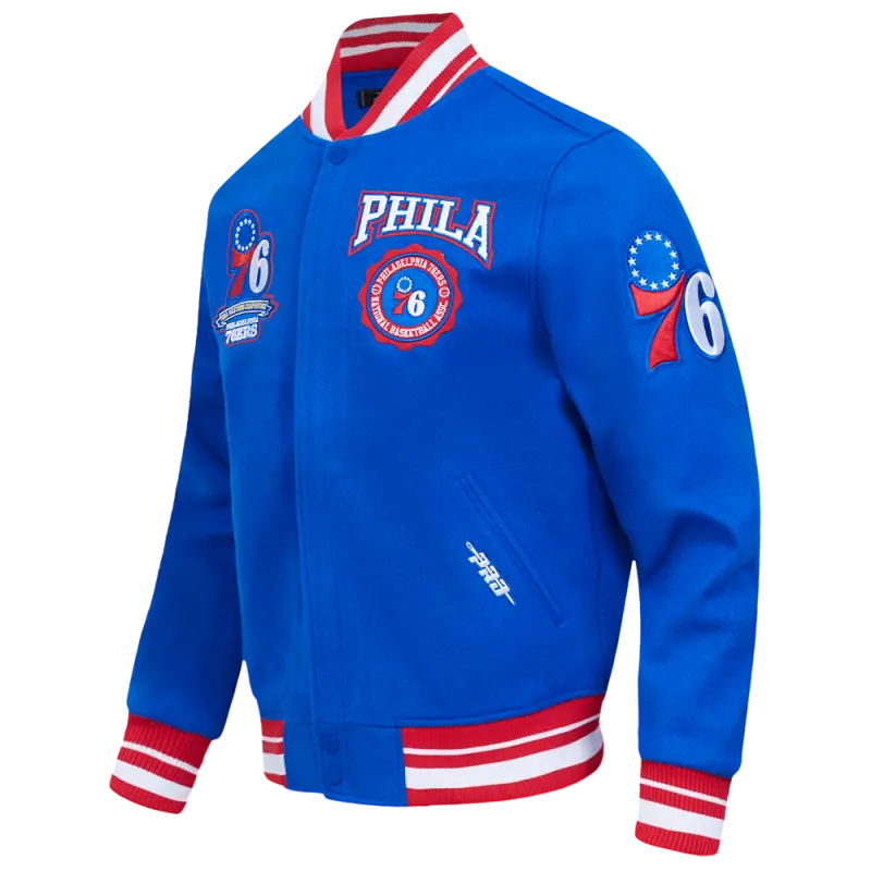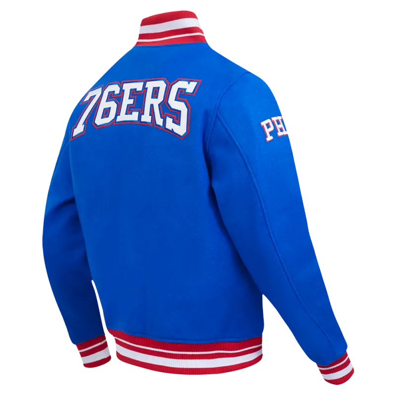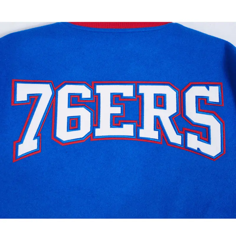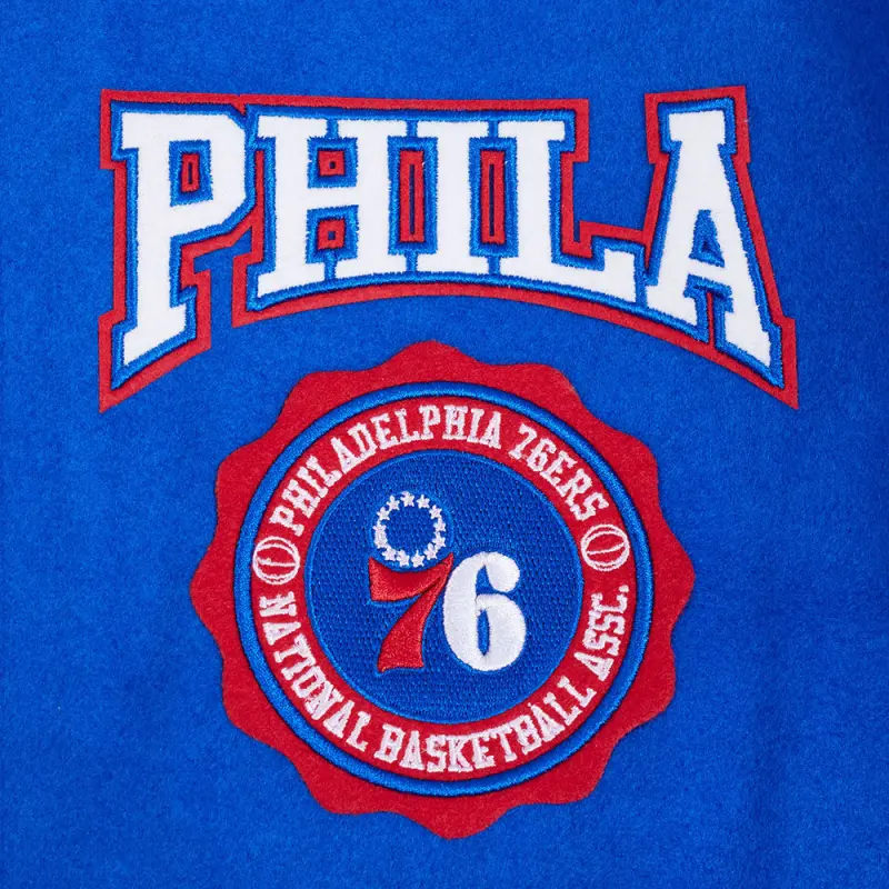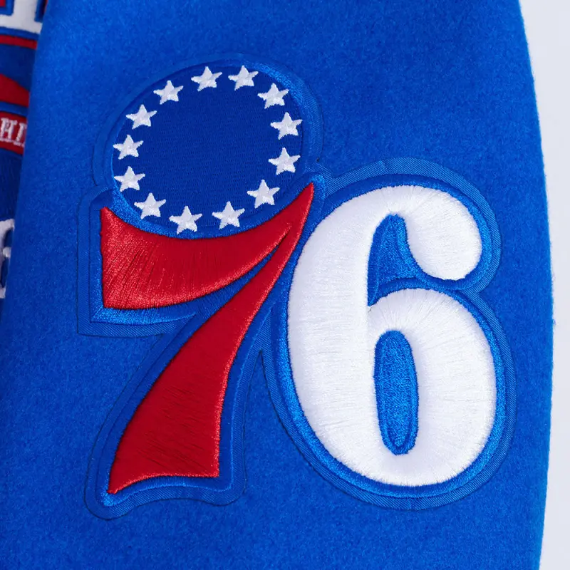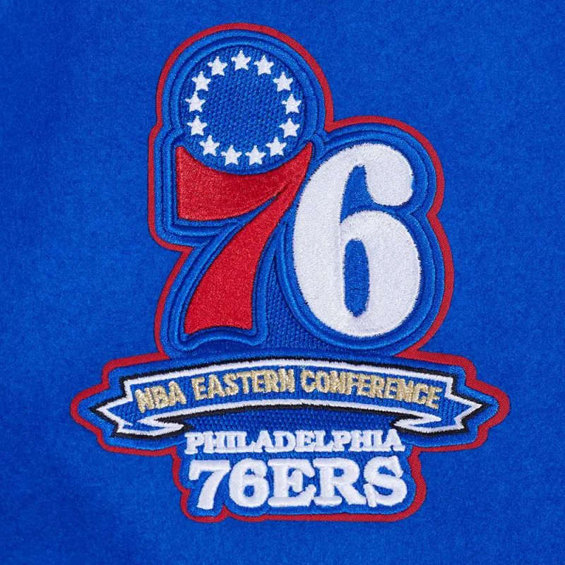 NBA PHILADELPHIA 76ERS CREST EMBLEM MEN’S RIB WOOL VARSITY JACKET (ROYAL BLUE\/RED)