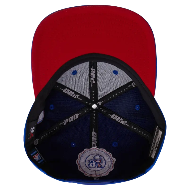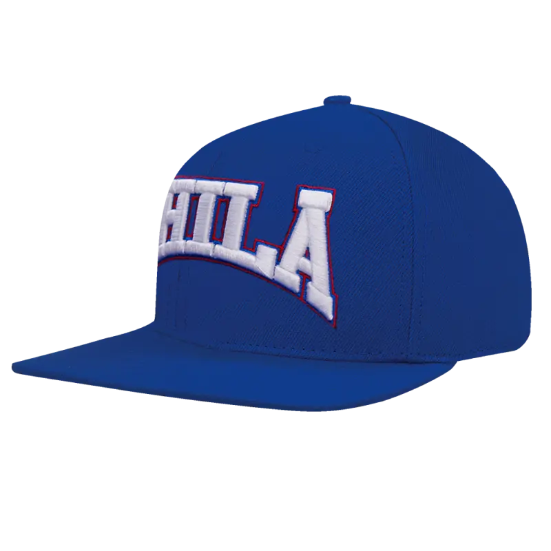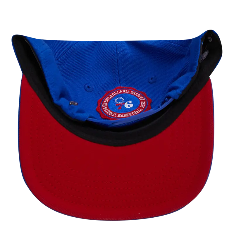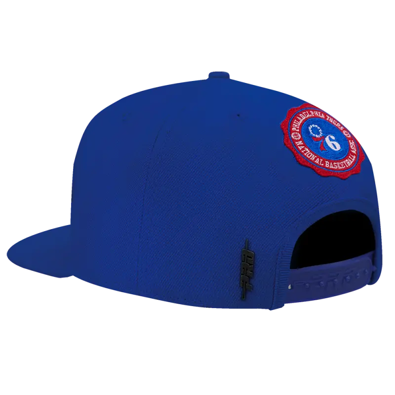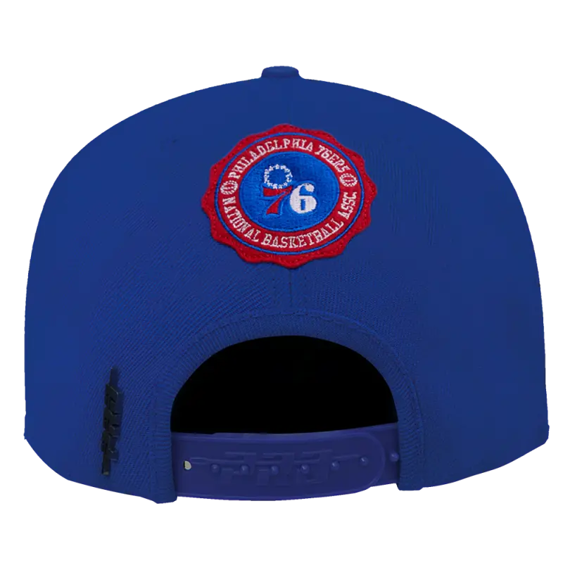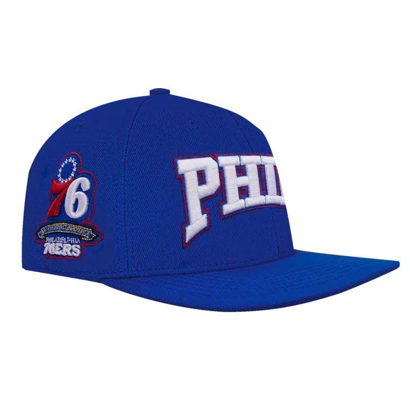NBA PHILADELPHIA 76ERS CREST EMBLEM UNISEX WORDMARK WOOL SNAPBACK HAT (ROYAL BLUE)