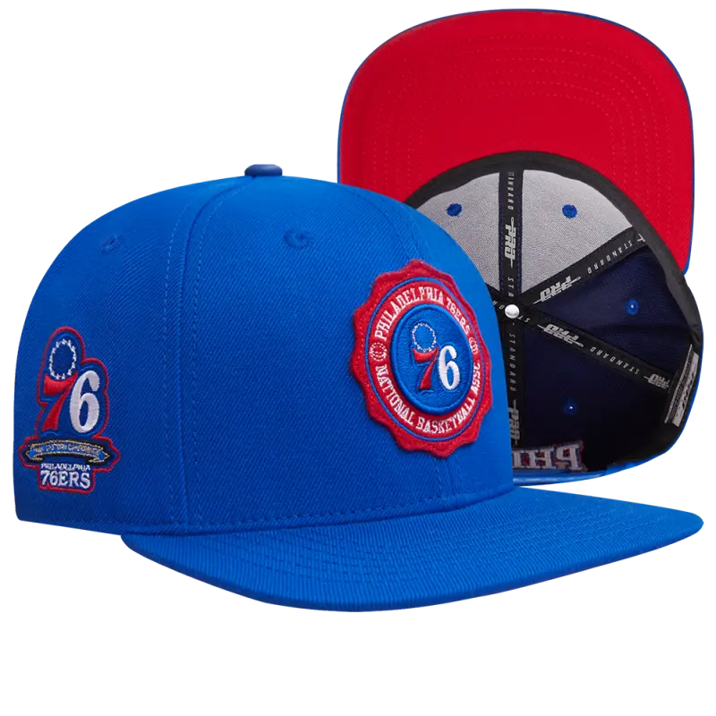 NBA PHILADELPHIA 76ERS CREST EMBLEM WOOL SNAPBACK HAT (ROYAL BLUE)