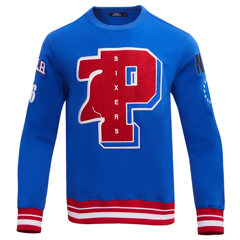 NBA PHILADELPHIA 76ERS MASHUP MEN’S RIB CREWNECK (ROYAL BLUE\/RED)