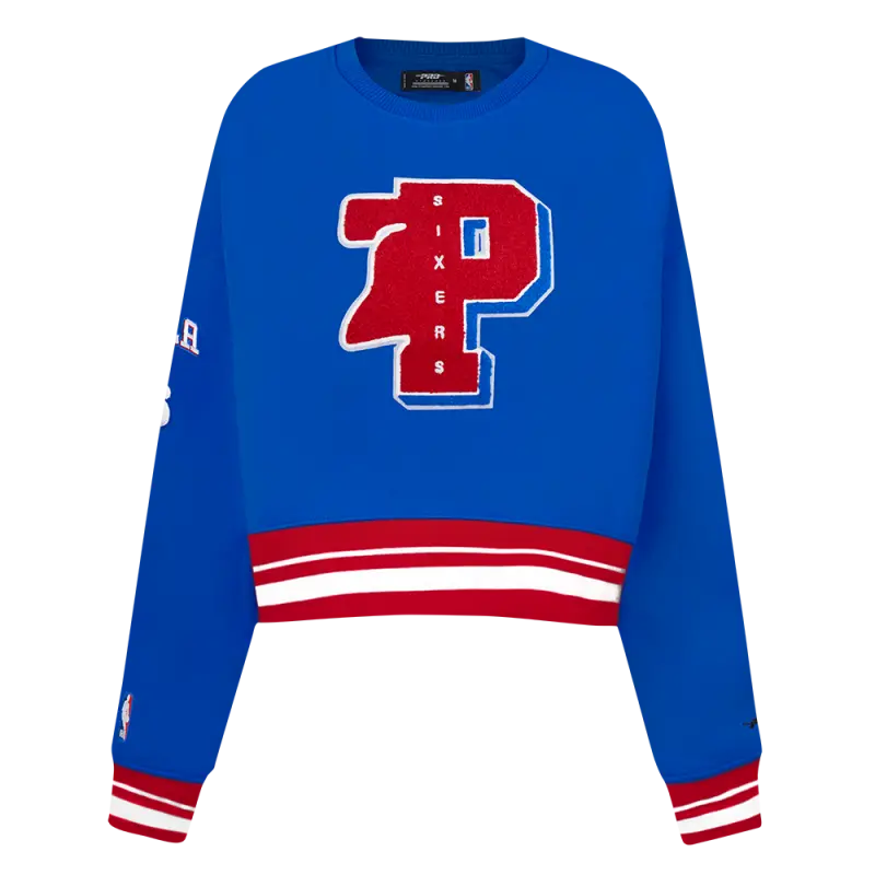 NBA PHILADELPHIA 76ERS MASHUP WOMEN’S RIB CREWNECK (ROYAL BLUE\/RED)