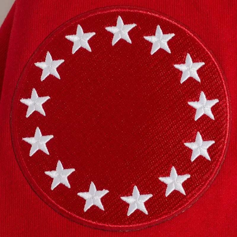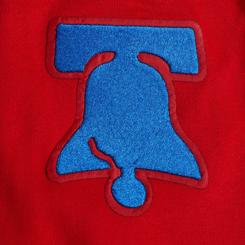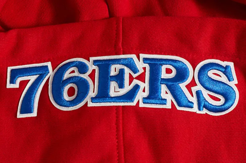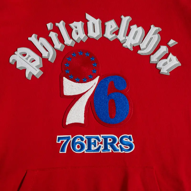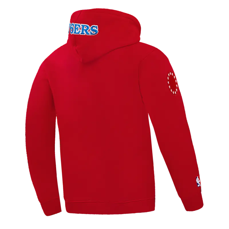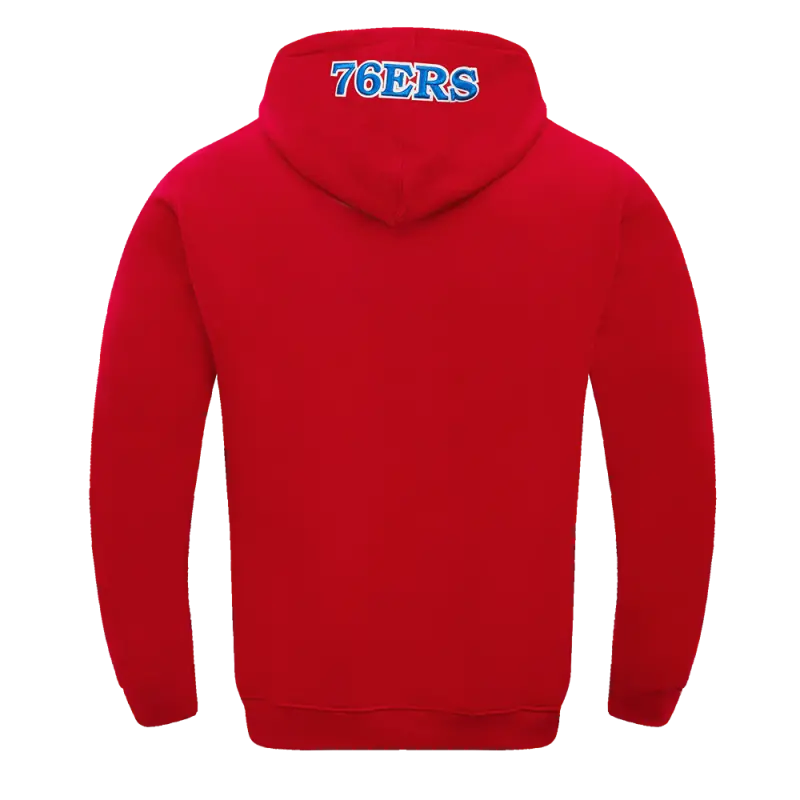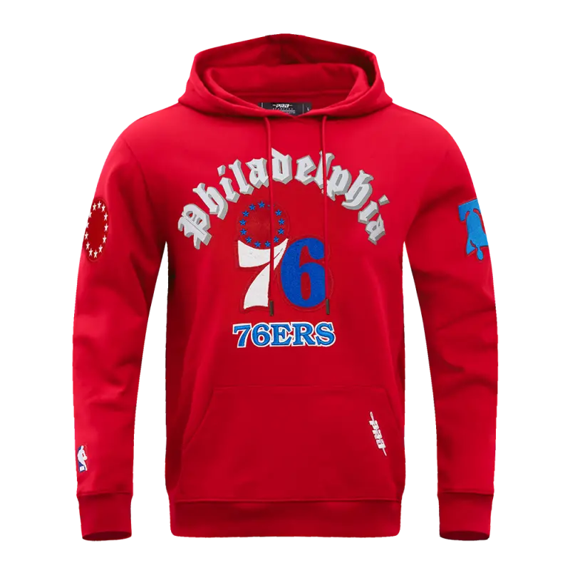 NBA PHILADELPHIA 76ERS OLD ENGLISH MEN’S PULLOVER HOODIE (RED)