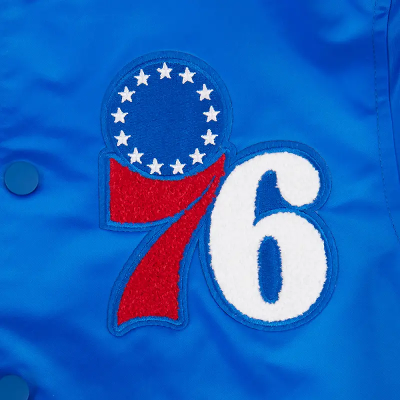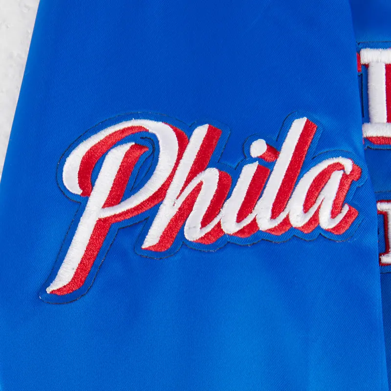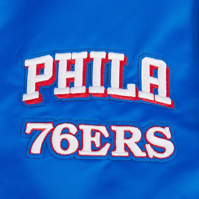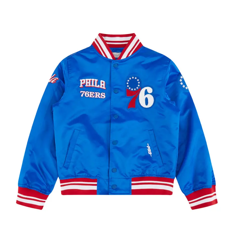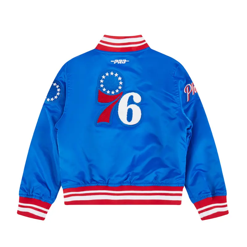 NBA PHILADELPHIA 76ERS RETRO CLASSIC BIG BOYS RIB SATIN JACKET (ROYAL BLUE\/RED)