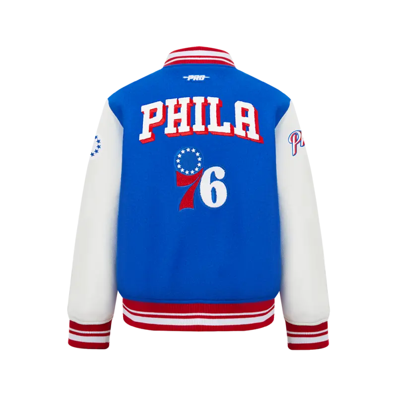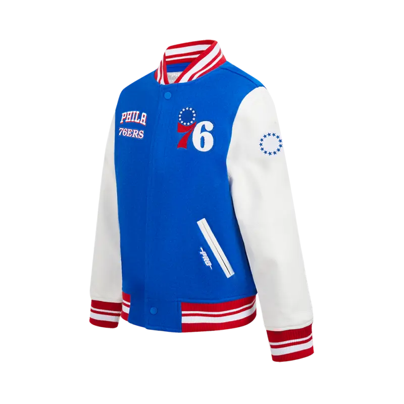 NBA PHILADELPHIA 76ERS RETRO CLASSIC BIG BOYS RIB WOOL VARSITY JACKET (ROYAL BLUE\/RED)