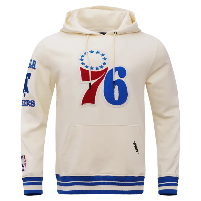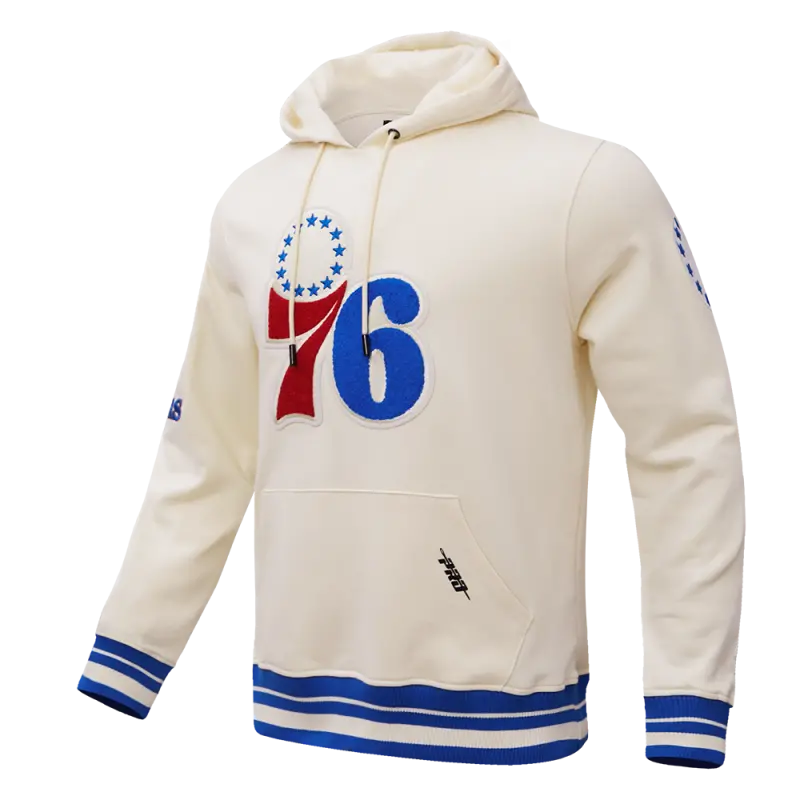 NBA PHILADELPHIA 76ERS RETRO CLASSIC MEN’S PULLOVER HOODIE (EGGSHELL\/ ROYAL BLUE)