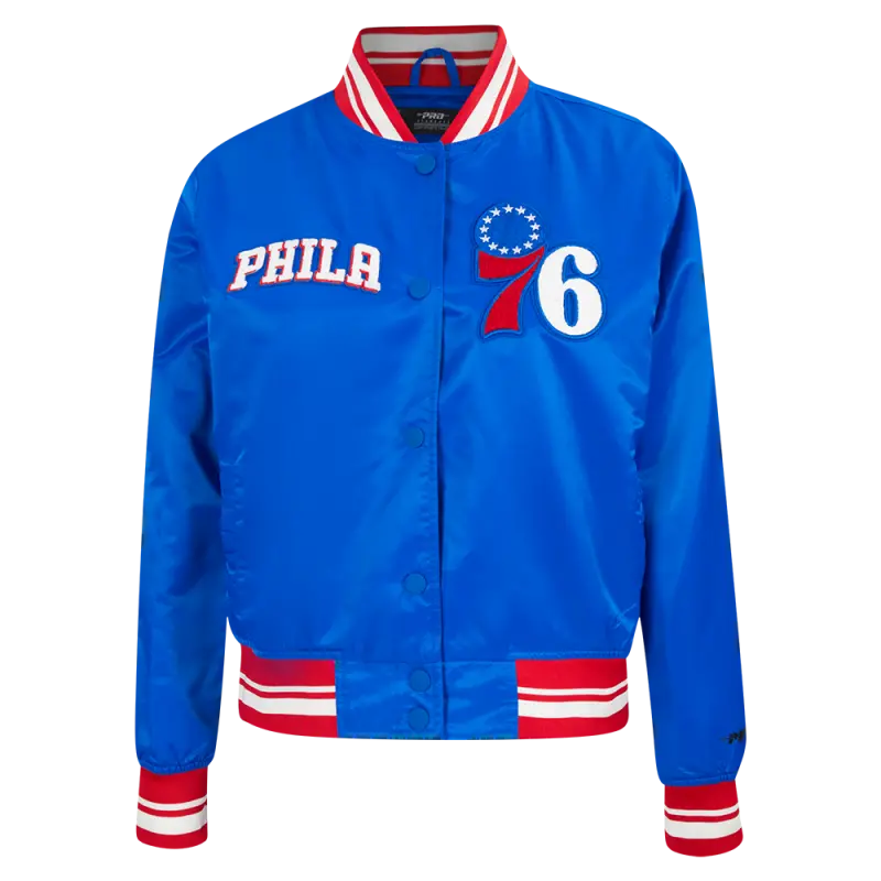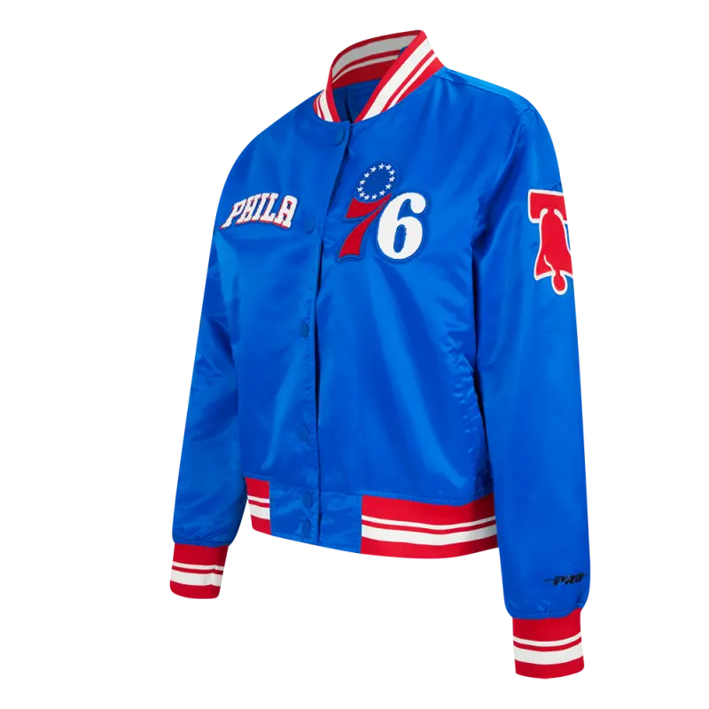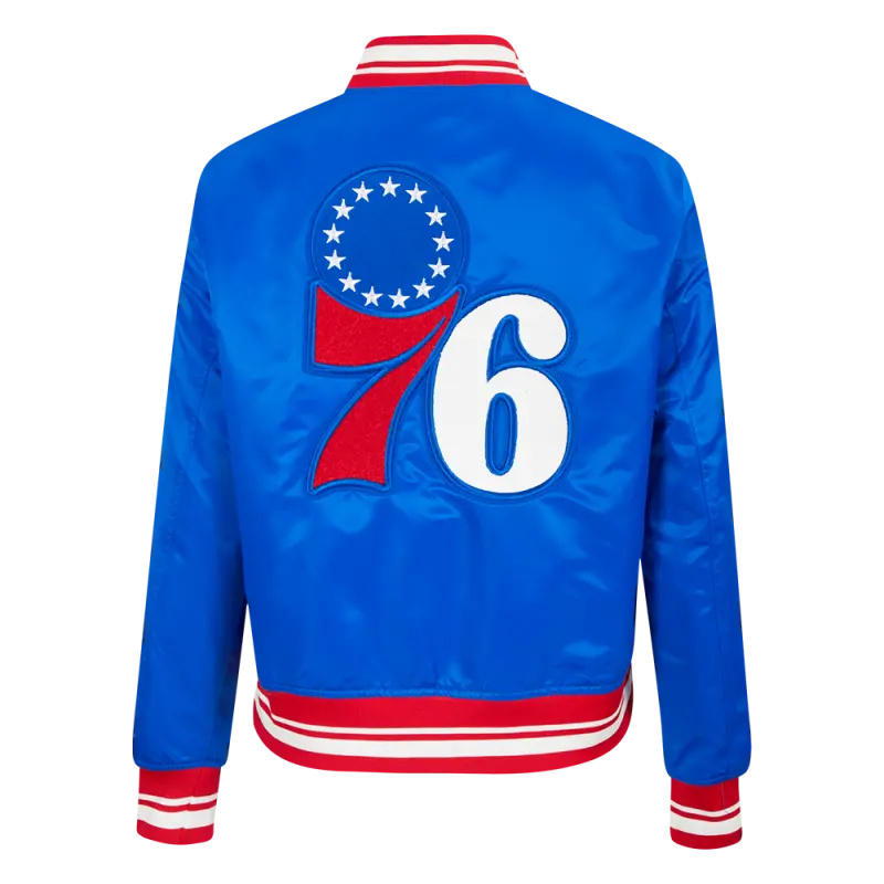 NBA PHILADELPHIA 76ERS RETRO CLASSIC WOMEN’S RIB SATIN JACKET (ROYAL BLUE\/RED)