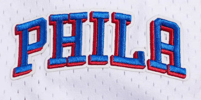 NBA PHILADELPHIA 76ers SCRIPT TAIL MEN’S DOUBLE KNIT 2.0 SHORT (RED)