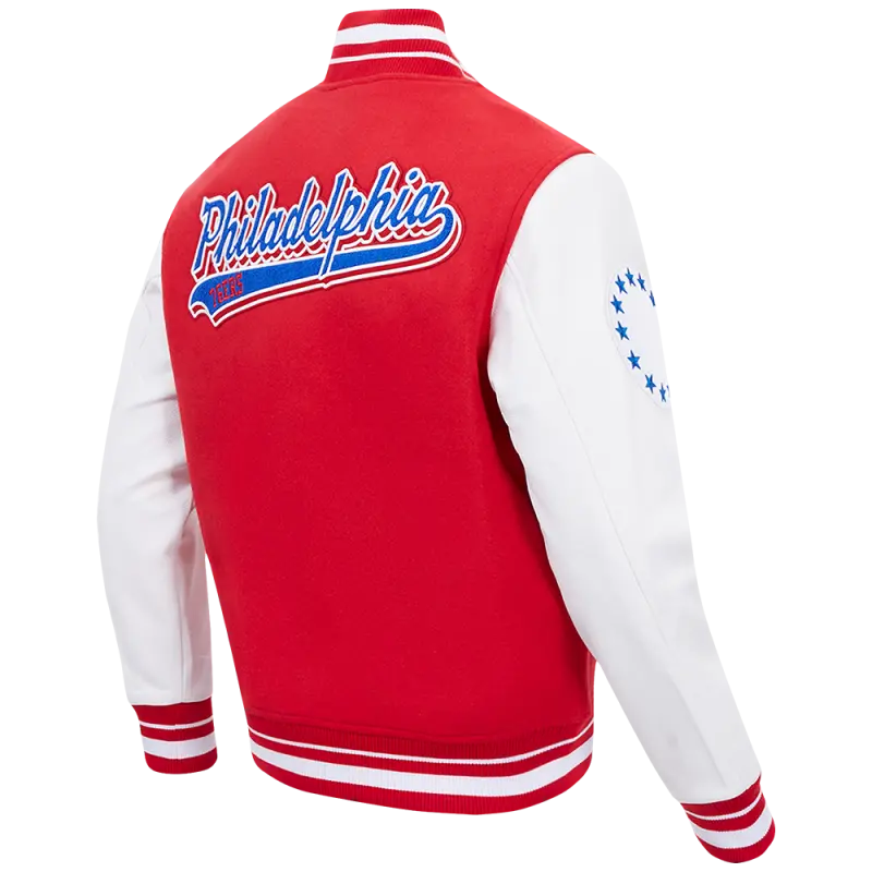 NBA PHILADELPHIA 76ers SCRIPT TAIL MEN’S RIB WOOL VARSITY (RED\/WHITE)