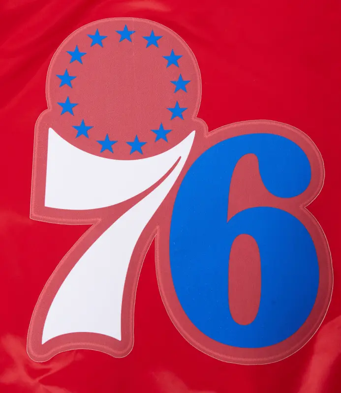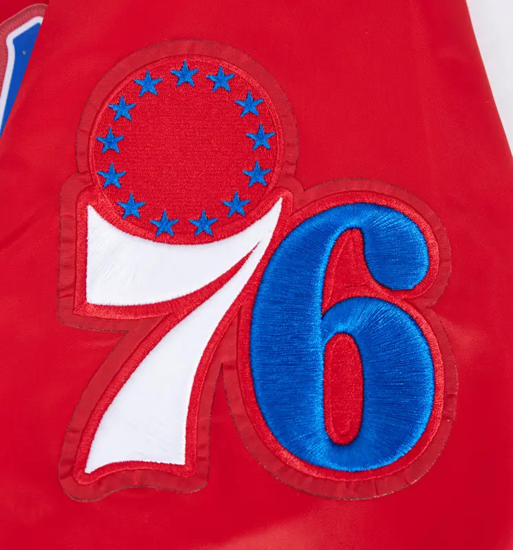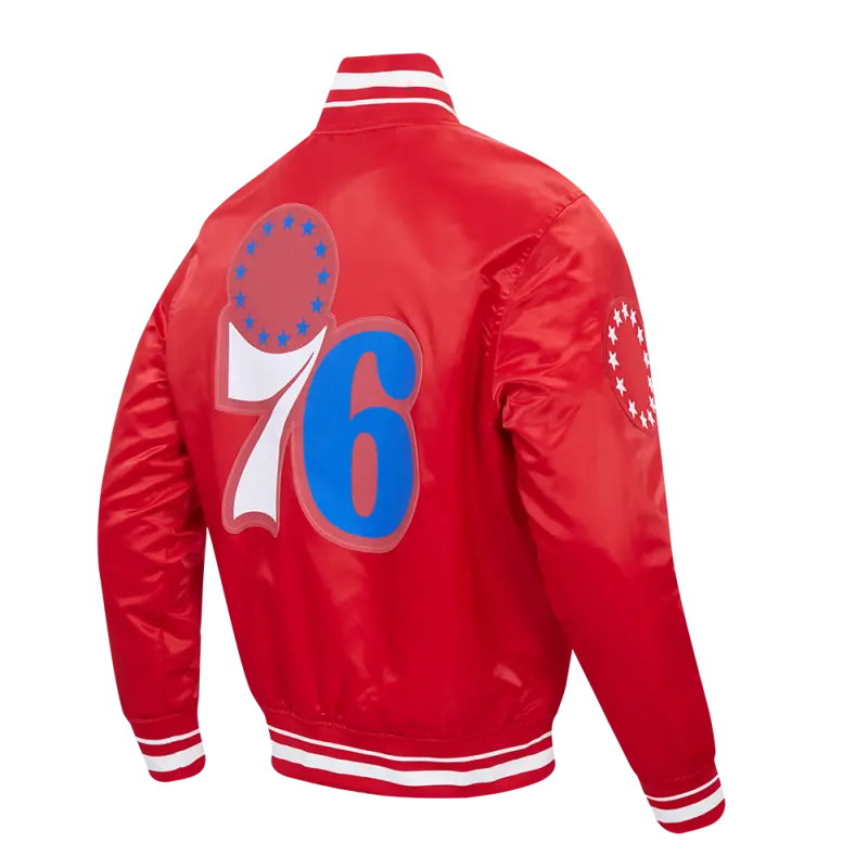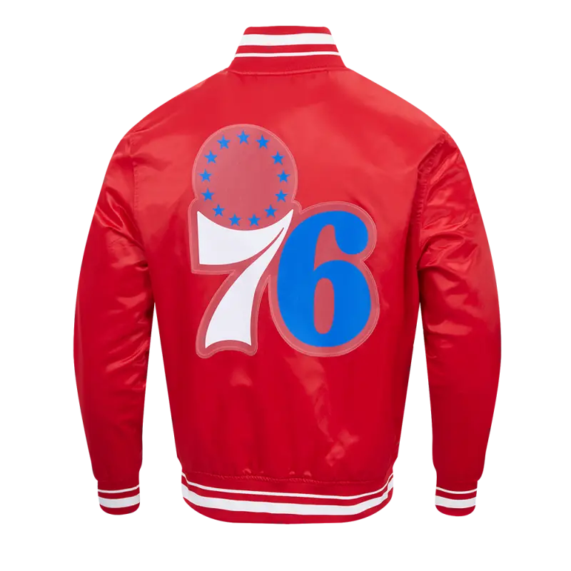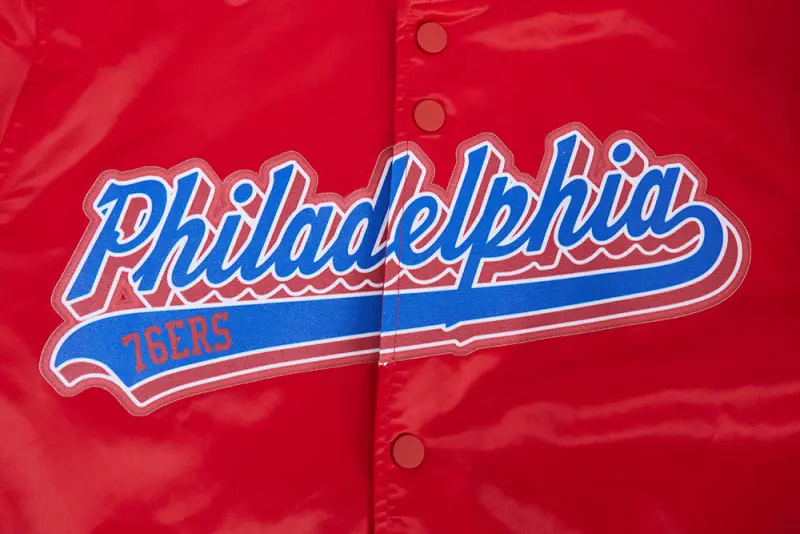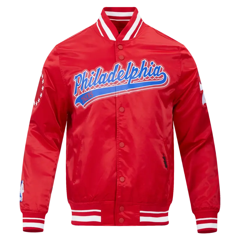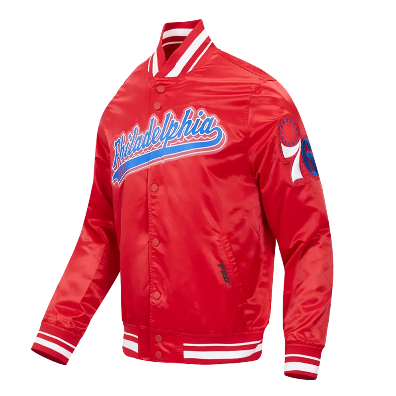 NBA PHILADELPHIA 76ers SCRIPT TAIL MEN’S SATIN JACKET (RED)