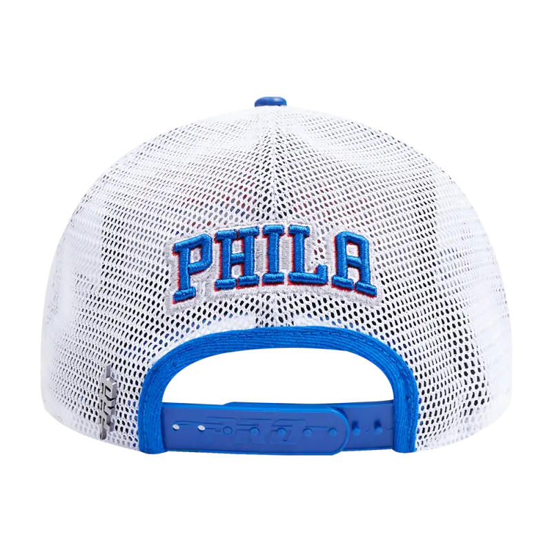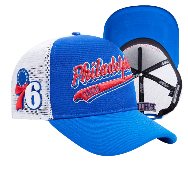 NBA PHILADELPHIA 76ers SCRIPT TAIL TRUCKER HAT (ROYAL BLUE)