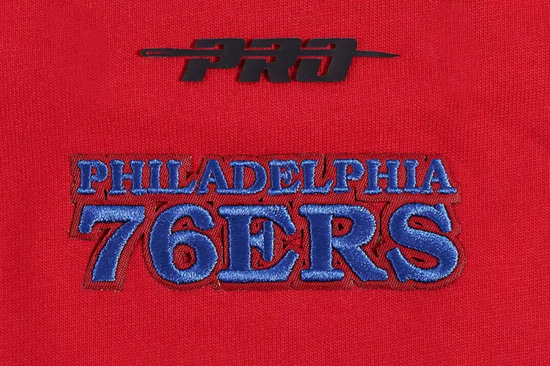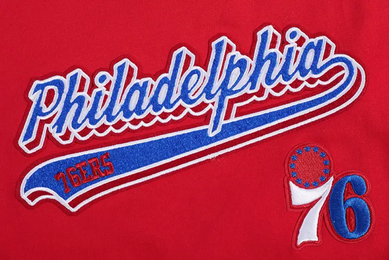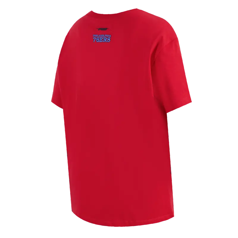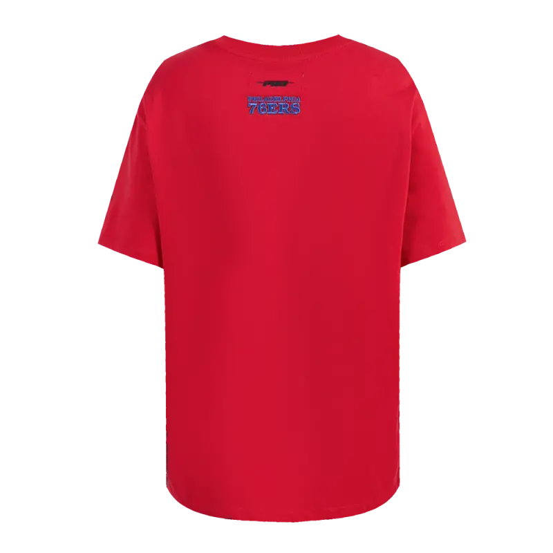NBA PHILADELPHIA 76ers SCRIPT TAIL WOMEN’S BOYFRIEND TEE (RED)