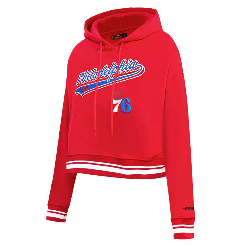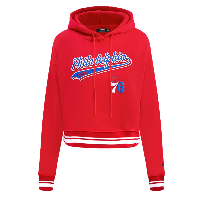 Home / Shop / SWEATSHIRTS / NBA PHILADELPHIA 76ers SCRIPT TAIL WOMEN’S RIB FLEECE CROPPED PULLOVER HOODIE (RED)