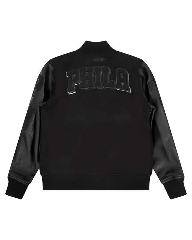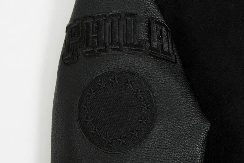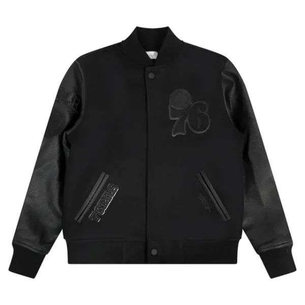 NBA PHILADELPHIA 76ERS TRIPLE BLACK BIG BOYS WOOL VARSITY JACKET (JET BLACK)