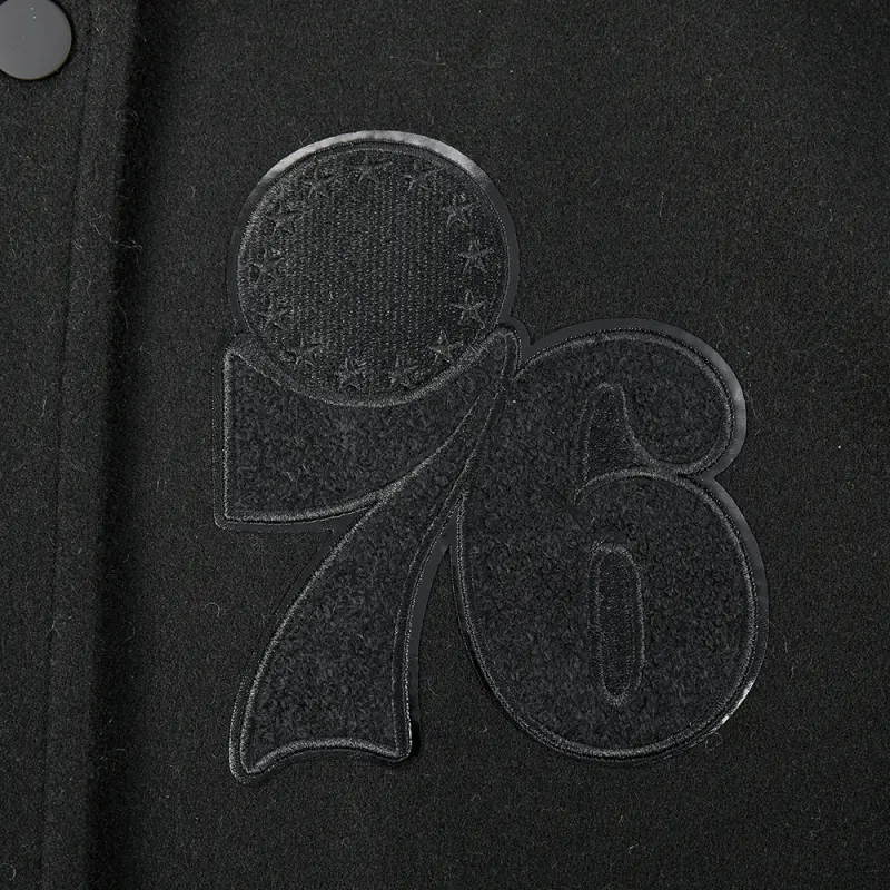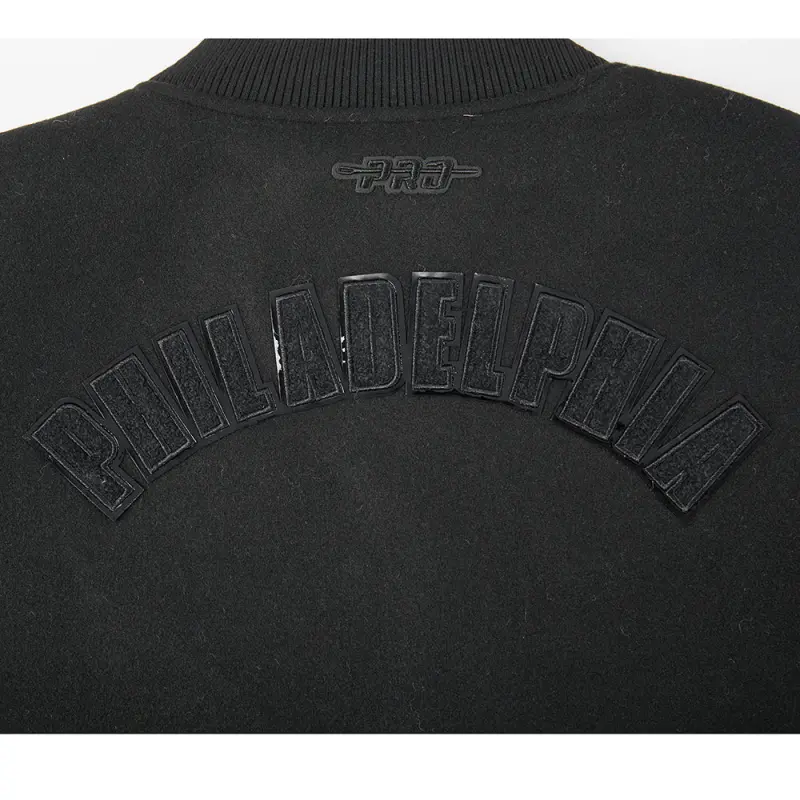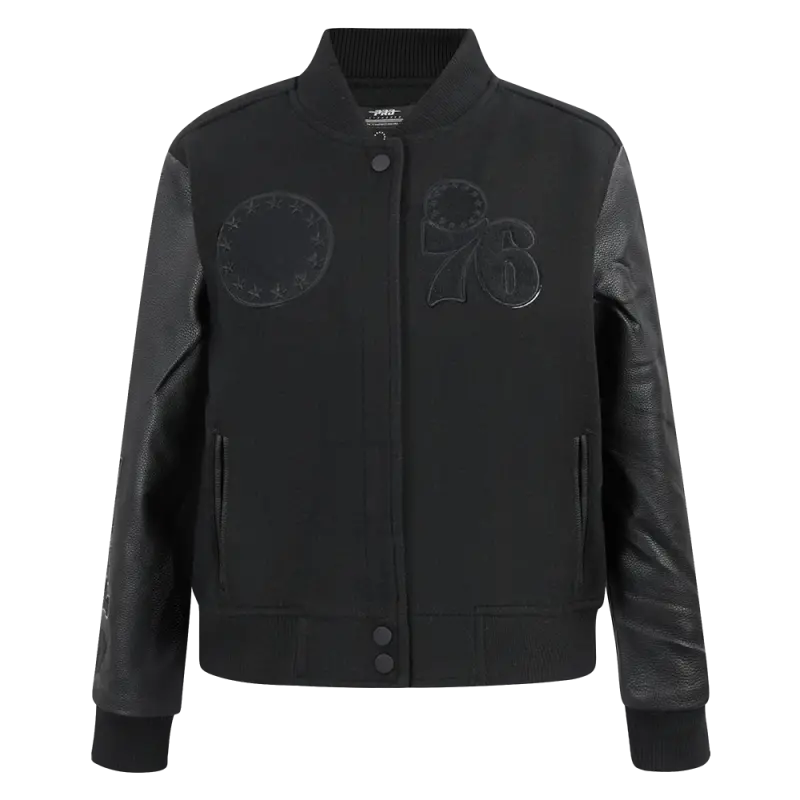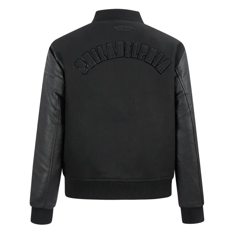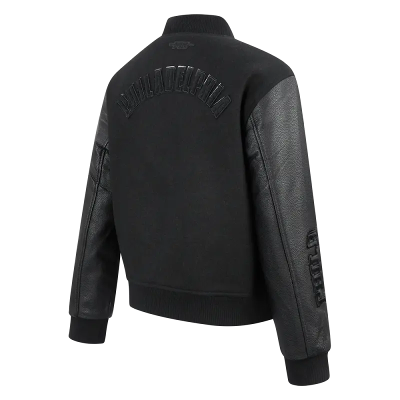 NBA PHILADELPHIA 76ERS TRIPLE BLACK WOMEN’S WOOL VARSITY JACKET (TRIPLE BLACK WOMEN’S)