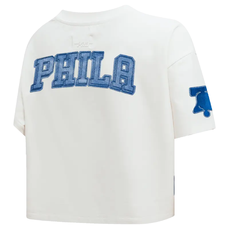 NBA PHILADELPHIA 76ERS VARSITY BLUES WOMEN’S BOXY TEE (LINEN)