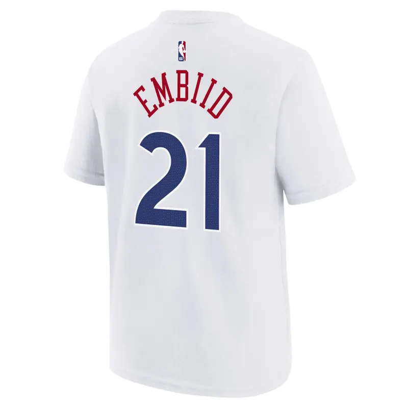 • When the Philadelphia 76ers hit the court, your kiddo is ready to watch Joel Embiid lead the team to victory. Let your youngster proudly show their support for their favorite team and their city with this 2024/25 City Edition Name & Number T-Shirt from Nike. With bold Philadelphia 76ers graphics and a soft cotton construction, this tee will let your young Joel Embiid fan enjoy game day in style and comfort.
